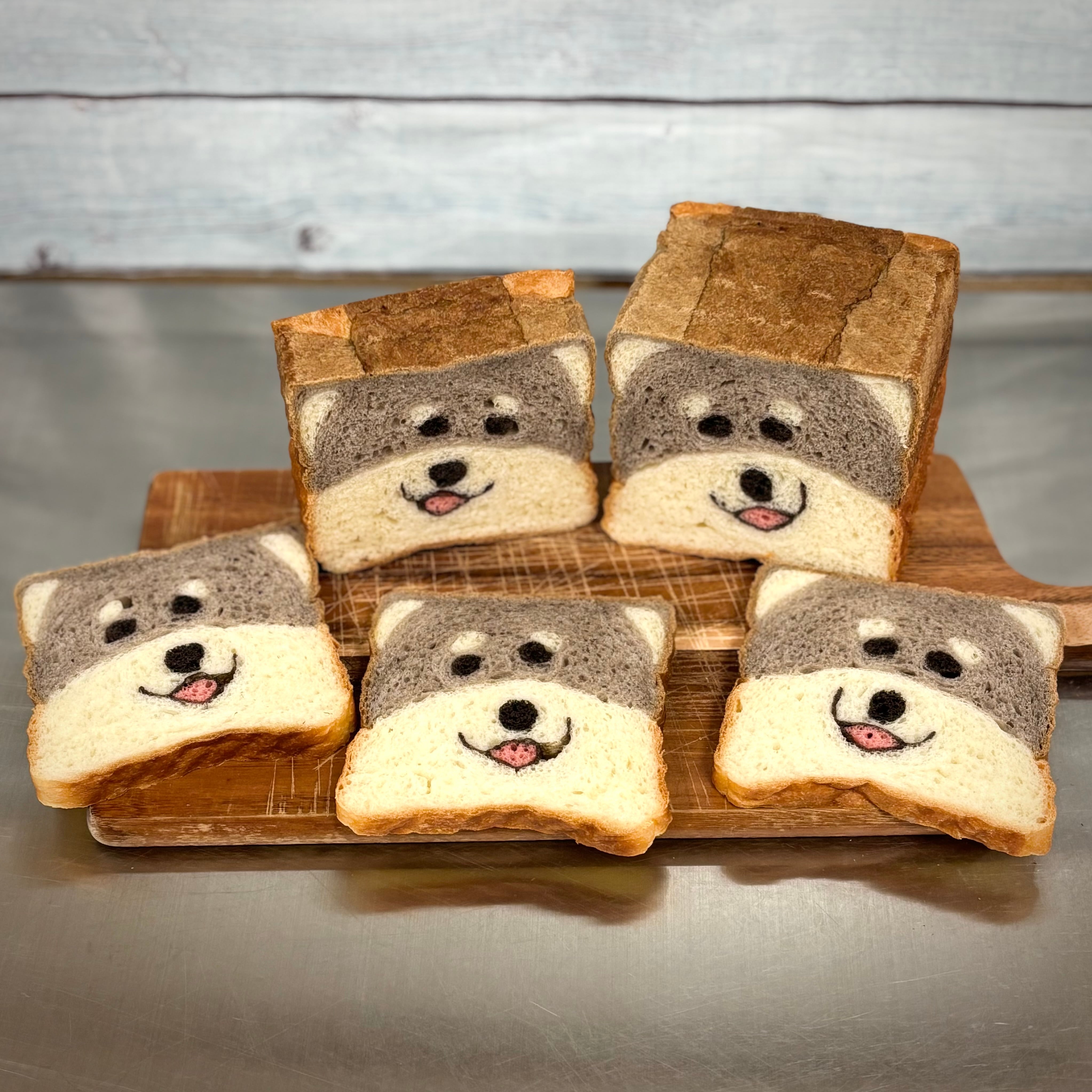 ◎断面に黒柴犬の図柄の食パンです。金太郎飴のような手法で一つずつ手作りしています。 それぞれ多少図柄が異なりますがご了承いただければ幸いです。